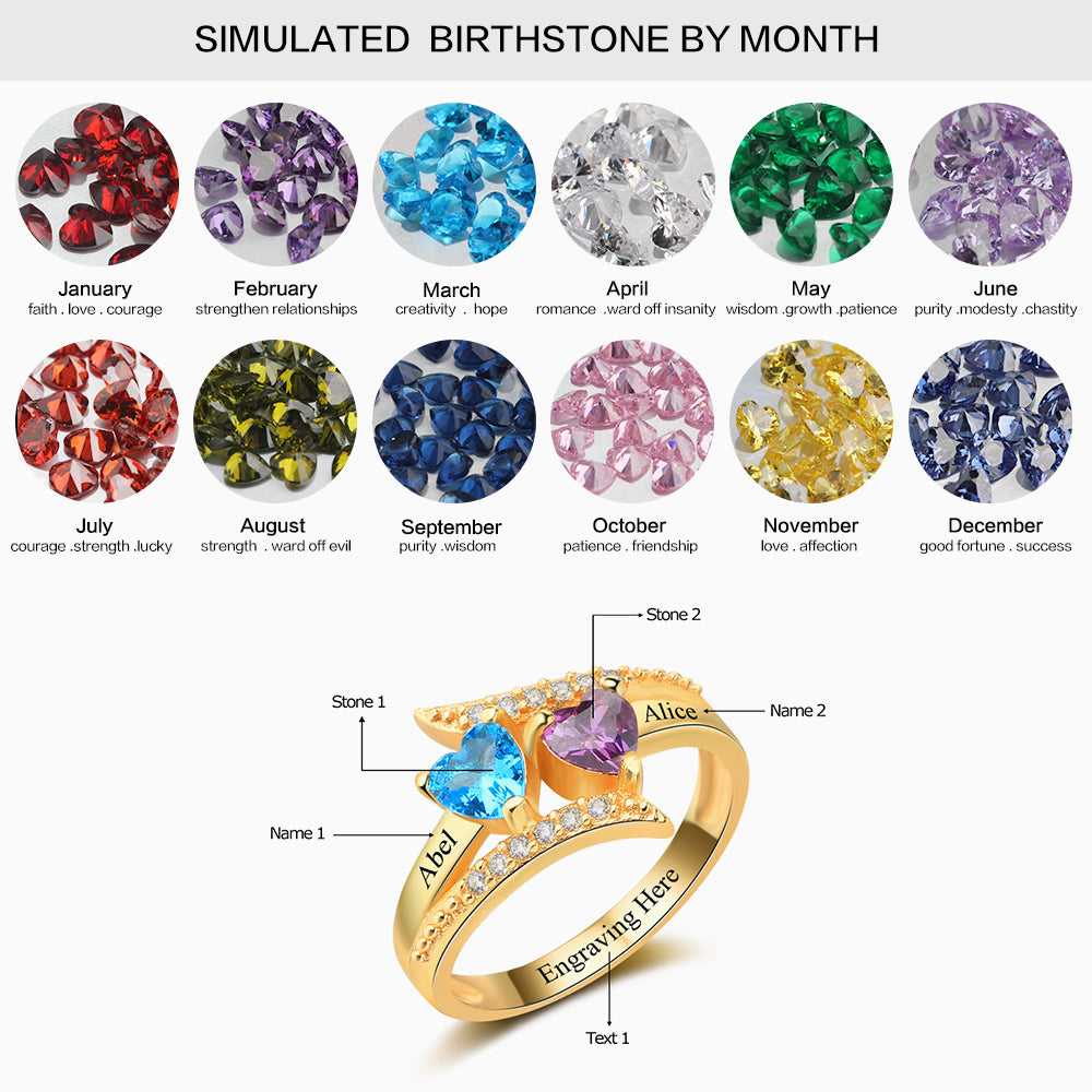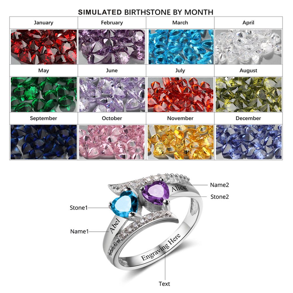 Looking for something different to make a special date? Maybe your anniversary or the birth of your children. Add your personalised names and message to create a special piece of jewelry to add to your collection. This gorgeous ring features two birthstones selected by you, surrounded by cubic zirconia stones to bring a sparkle into your life. Gift this to your wife, sister, best friend or daughter! Its perfect for every occasion.