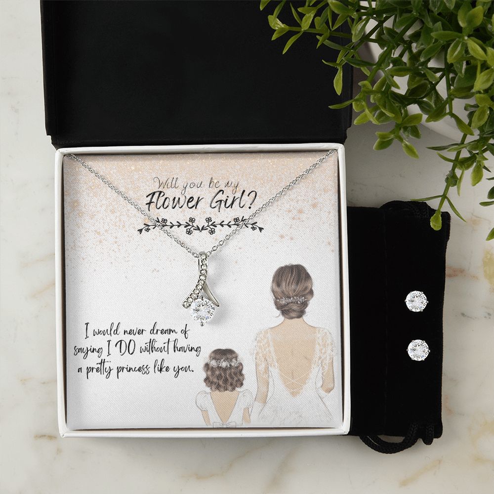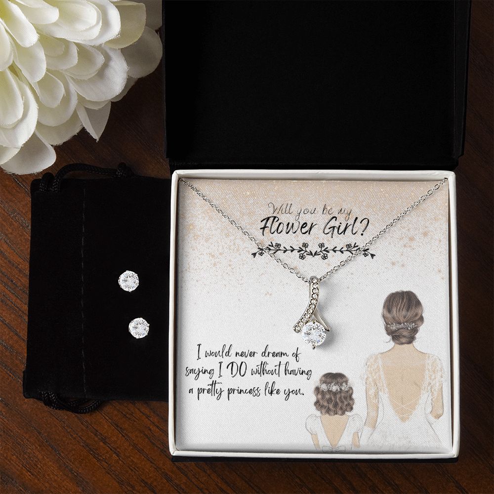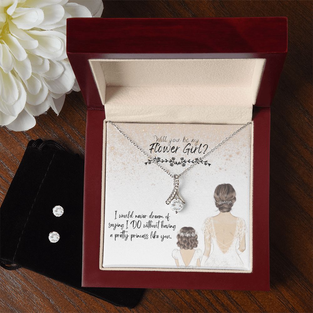 Imagine her reaction when your flower girl opens this stunning gift! The Alluring Beauty Necklace and Cubic Zirconia Earring Set is a sweet treat that is sure to dazzle your special someone! The necklace and earring pairing provides loads of sparkle when worn together or separately, and is perfect for any occasion! Do not miss out on this special offering!